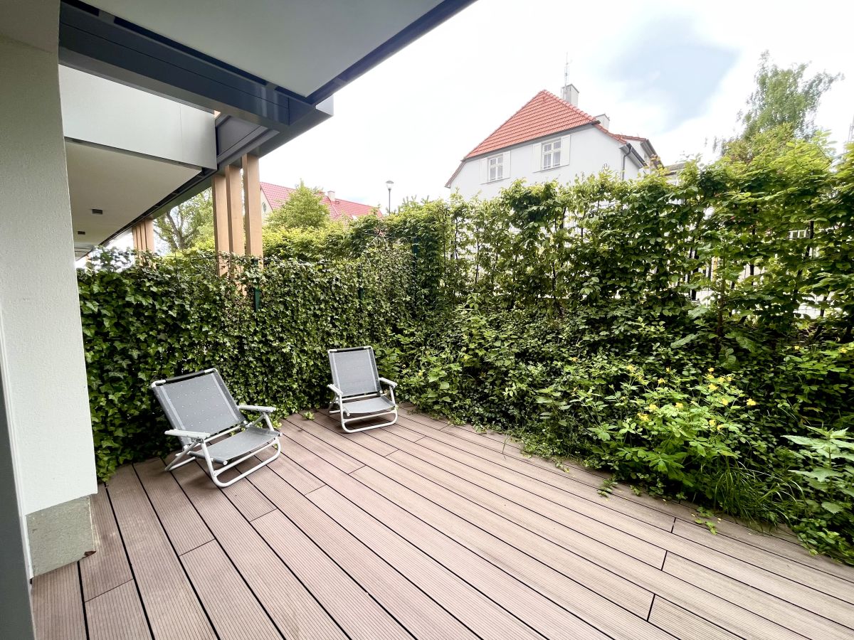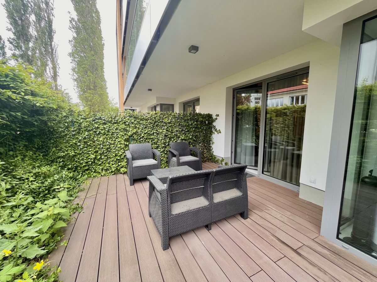 Składa się on z salonu z aneksem kuchennym, sypialni oraz łazienki i przestronnego tarasu.